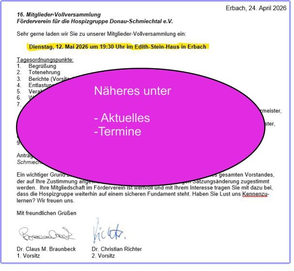Die Hospiz Donau-Schmiechtal besteht aus der ambulanten Hospizgruppe und dem Förderverein.